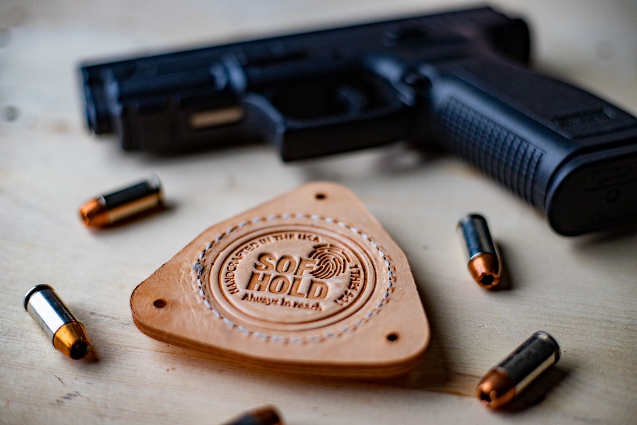 SofHold Gun Magnets only use top-grade soft leather covers with embossed graphics so your gun can stay scratch free.